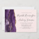 The left-hand edge of this elegant modern wedding invitation features a purple watercolor agate border trimmed with faux gold glitter. The customisable text combines charcoal grey handwriting, copperplate and italic fonts on a blush pink background. The reverse side features a matching purple and gold agate design.