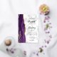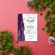 The left-hand edge of this elegant modern wedding invitation features a purple watercolor agate border trimmed with faux gold glitter. The customisable text combines real gold foil handwriting script with black copperplate and italic fonts on a grey and white marble background. The reverse side features a matching purple and gold agate design.