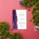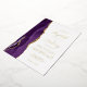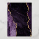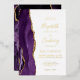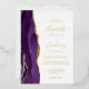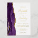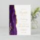 The left-hand edge of this elegant modern wedding invitation features a purple watercolor agate border trimmed with faux gold glitter. The customisable text combines handwriting, copperplate and italic fonts in real gold foil on a white background. The reverse side features a matching purple and gold agate design.
