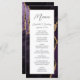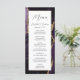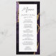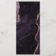 This elegant, modern wedding menu features a watercolor purple agate background trimmed with gold faux glitter. The text appears in elegant charcoal grey handwriting and sans serif fonts on a white rectangle. The agate design is repeated on the reverse.