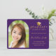 Modern Purple Gold Cap Script Photo Graduation Announcement