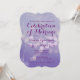 Simple and Modern Trendy Typography Style Wedding Celebration Invitations Template with a purple and lilac background with a bokeh light dots effect. The text reads "The pleasure of your company is requested at the Celebration of Marriage between {bride and groom}. You can edit any wording on the template to suit your needs. The back of the invite has the same pretty colour. The colours may look slightly different hues depending on which paper type you choose. Choose from more than 10 different types of paper, including textured finishes. Perfect for spring or summer wedding invitations.
