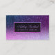 Modern purple blue glitter with faux purple frame ombre makeup artist business card.