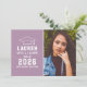 Announce your high school or college graduate in style with this graduation announcement and party invitation. Two-sided card features a senior portrait of the graduate with grad cap and simple and modern white typography design. Lavender / violet purple background can be changed to a different colour with the "Customise It" feature, then Edit / Background to select another colour.