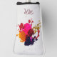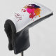 A modern paint splatter design with pink, purple, red, and gold paint or nail polish splashes. This putter cover will definitely catch the eye! You can customise it by adding your initials. The font, font size, and font colour can also be changed using the edit button.