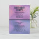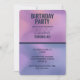 A birthday party invitation with a modern creative background. Pink and purple colours swirling around creating an elegant gradient effect. Stylish dark blue text.