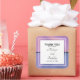 Birthday party thank you stickers with a modern stylish background. Pink and purple colours swirling around creating an elegant gradient effect.