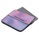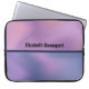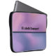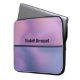 A laptop sleeve with a modern stylish background. Pink and purple colours swirling around creating an elegant gradient effect.