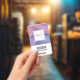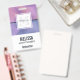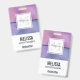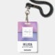 Name badge with a modern stylish background. Pink and purple colours swirling around creating an elegant gradient effect.