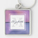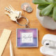 A keychain with a modern stylish background. Pink and purple colours swirling around creating an elegant gradient effect.