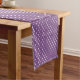 This table runner features a trendy polka dot pattern on a purple background. The background colour can be personalised.