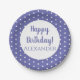 Modern Purple Polka Dots Name Birthday Party Paper Plate