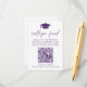 Celebrate your high school graduate’s success with this elegant college fund enclosure card featuring a purple graduation cap at the top and "College Fund" in modern purple script on a white background. Easily personalise it with the graduate’s name, school name, graduation year, and custom instructions. A convenient QR code allows friends and family to contribute effortlessly to the graduate’s college fund. This stylish and functional design is the perfect addition to graduation announcements, party invitations, or thank you cards.
