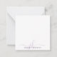 Personalised modern, minimal note cards with simple calligraphy style script typography initials or monogram and name in light and dark purple. CHANGES: The text font style, colour, size and placement can be changed by clicking on CUSTOMIZE FURTHER under the PERSONALIZE section for a custom look or by contacting the designer via Zazzle Chat or makeitaboutyoustore@gmail.com if you'd like this design modified, on another product or would like coordinating items.