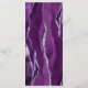 This elegant, modern wedding menu features a watercolor purple agate background trimmed with silver faux glitter. The text appears in elegant silver grey handwriting and sans serif fonts on a dark slate black rectangle. The agate design is repeated on the reverse.