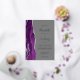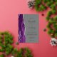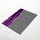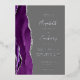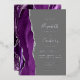 The left-hand edge of this elegant modern wedding invitation features a purple watercolor agate border trimmed with faux silver glitter. The customisable text combines handwriting, copperplate and italic fonts in real silver foil on a grey background. The reverse side features a matching purple and silver agate design.