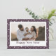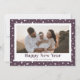 Custom purple photo New Year card featuring a beautiful festive script title and little stars on a plain purple background on the front and at the back. The background can be changed to any colour. Easily personalise this minimalist purple photo holiday card with your photo and family name.