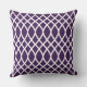 Square accent pillow design features a stylish wavy diamond trellis framework pattern. Colours are white and dark eggplant purple