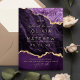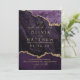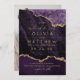 Modern stylish dark wedding card Purple with gold dust on with a gold ink pour effect (the gold is a digital effect, not real foil!) and modern calligraphy. Classy and elegant, simple and modern invitation. Gold ink pour effect (the gold is a digital effect, not real foil!) and modern calligraphy.
