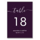 Minimalist, yet elegant purple wedding table number card featuring a modern script font. Matching items available.