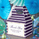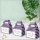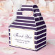 Modern purple wedding favour boxes. Easily personalise these purple striped wedding favour boxes with your event details.