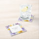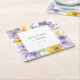 Modern Purple & Yellow Violets Floral Wedding Square Paper Coaster