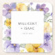 Celebrate your love with a wedding coaster that’s as elegant as your special day. This modern design features a delicate frame of yellow and lavender watercolor violets, accented by soft sage greenery for a touch of natural beauty. Clean, contemporary fonts add a timeless sophistication, making this the perfect blend of simplicity and charm. Let your wedding begin with a stunning first impression! Created by Simply Farmhouse Press.