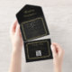 Modern QR Code Art Deco Monogram Wedding Foil All In One Invitation