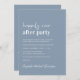 Minimal modern dusty blue elopement or private wedding announcement and reception invitation featuring "Happily Ever After Party" in a mix of a contemporary white script and bold trendy white typography. Personalise your marriage announcement and reception invitation and add your names in a signature-like script. On the reverse side, input the URL address of your wedding website to create a QR code for your guests to scan to RSVP online and obtain all the details.