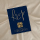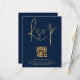 Modern QR Code Gold Navy Blue Script Wedding RSVP Card