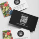 This design features a QR code website business card, with a photo and logo, a modern minimalist, with simple minimal, chic professional, with social media, a trendy unique, add your logo here in the template, a digital contact, with black and white.