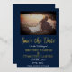 Modern, QR Code, photo, navy blue, gold foil Wedding Save the Date. You can personalise it with your own details, change the photo and add your own QR code.