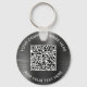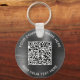 Simple elegant promotional keychain for your business or organization with a brushed dark silver grey faux metallic background. Input your website URL address to create a scannable QR code and add two lines of customized white text, such as your company name, slogan, thank you, or leave blank.