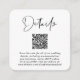 Modern wedding details square enclosure card with "Details" in a chic contemporary script. Input your wedding website address to create a QR code that your guests can scan for all of the details such as directions and accommodations and to RSVP online. The back features your photo overlayed with your names and wedding date joined together by a heart.