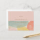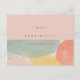 Postcard featuring the quote, See Possible Everywhere. A colourful combination of abstract shapes in pink, yellow, green and red shades with gold faux colour elements. Kimberly Brett.