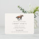 Modern Horse Race Derby Party Invitation with an illustration of a race horse with jockey and striped pattern on the back. All text elements can be changed so this design can be used for other events too: classy equestrian wedding invitation, horse birthday party, derby watch party, horse barn opening and more. Background, colour of the illustration and text colours can be changed using the design tool!