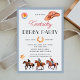 Modern Horse Race Derby Party Invitation with an illustration of a race horse with jockey and striped pattern on the back. All text elements can be changed so this design can be used for other events too: classy equestrian wedding invitation, horse birthday party, derby watch party, horse barn opening and more. Background, colour of the illustration and text colours can be changed using the design tool!