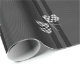 A chequered racing flags applique rendered as a chrome like applique on a carbon fibre style design print. The carbon fibre and black stripes look suits automotive, modern, and industrial tastes and the 3D simulation of the flags makes for a dynamic looking design.