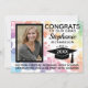 Modern Rainbow Bokeh Bubbles Photo Graduation Invitation