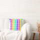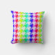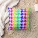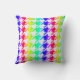 This colourful throw pillow features a white geometric houndstooth pattern over a rainbow gradient background.