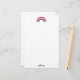 These personalized modern and whimsical rainbow note cards featuring a vibrant rainbow in coral, pink, teal and blue and a name in a script font send a smile wherever they go. Part of a collection from Parcel Studios.