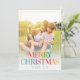 Modern Holiday Card reading MERRY CHRISTMAS in a trendy bright rainbow typography design with your favourite family photo framed with a yellow half ray of sun.