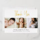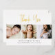 Customise this "Modern Real Gold foil Script Custom 3 Photo Baby Shower Thank You Card" template – a chic and heartfelt way to express your gratitude. This thank you card features modern gold foil script typography and space for three custom photos, adding a personal touch to your message of thanks.