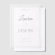 The translucent overlay creates an ethereal presence, allowing soft light to play across the names that matter most. Paired with a matching backer, this design invites layering, customisation, and a tactile experience that feels as intimate as the vows you’ll exchange.