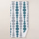 This towel set has a mid-century modern design of teal and grey rounded rectangles in increasing and decreasing size running vertically on a field of white.