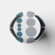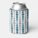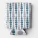 This can cooler has a mid-century modern design of teal and gray rounded rectangles in increasing and decreasing size running vertically on a field of white.