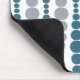 This mouse pad has a mid-century modern design of teal and grey rounded rectangles in increasing and decreasing size running vertically on a field of white.