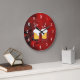 A clock with a modern abstract pattern. Red and black colors swirl, mix and mingle together. Creative, artistic and unique with a dark, mysterious flair. A pair of foamy frothy beer glasses clink together in celebration.