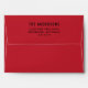 Custom A7 holiday mailing envelopes feature a red background colour with small rustic red and black buffalo plaid patterned design printed on the inside. Personalise the stylish black text on the back flap with your return address.