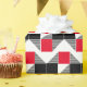 When retro vintage classic inspires modern art, this red and black geometric squares pattern is inspired by the vintage buffalo plaid and chekerboard style, with a touch a memphis abstract geometrics in an aesthetic pattern to form a stylish and elegant modern colour block pattern of geometric shapes as squares and tiriangles, zig zag in red and black and white to give a nice decoration on a wrapping paper.